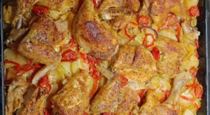 Kuře pečené na bramborách se zeleninou a smetanou: Vše v jednom pekáči a bez práce -> Hähnchen auf Kartoffeln gebacken mit Gemüse und Sahne: Alles in einer Auflaufform und ohne Aufwand