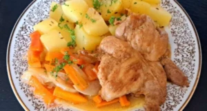 Hähnchen-Naturschnitzel mit Buttergemüse und Kartoffeln: Ein hausgemachtes Mittagessen, das Sie begeistern wird