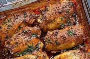 Gebackene Hähnchenschenkel mit Honig, Limette und Koriander – einfaches Mittagessen aus einer Schüssel