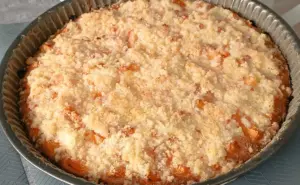 Löffelkuchen mit Aprikosen: schneller Nachtisch ohne Abwiegen und mit knusprigen Streuseln