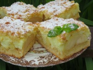 Apfelwolken: Unser liebster cremiger Puddingkuchen mit Äpfeln und saurer Sahne- zarter als Windbeutel…