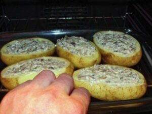 Ausgezeichnete gefüllte Kartoffeln mit Pilzmischung und Käsekruste – perfektes Mittagessen für jeden Anlass