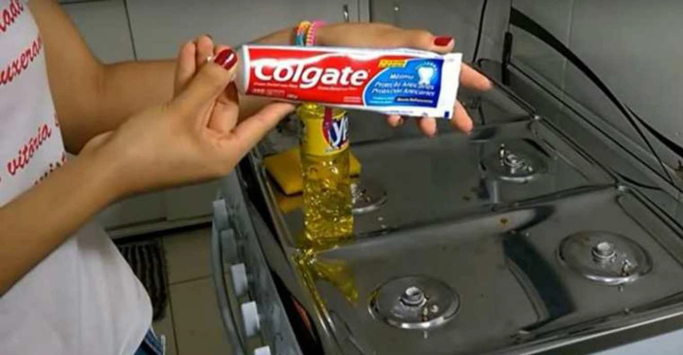 Eingebrannter Boden einer Pfanne kann jede Köchin zur Verzweiflung bringen. Zahnpasta bewältigt auch dieses Problem. Tragen Sie sie auf die verschmutzte Stelle auf, schrubben Sie mit einem Schwamm und spülen Sie ab. Die Oberfläche ist sauber, ohne aggressive Chemikalien zu verwenden.
