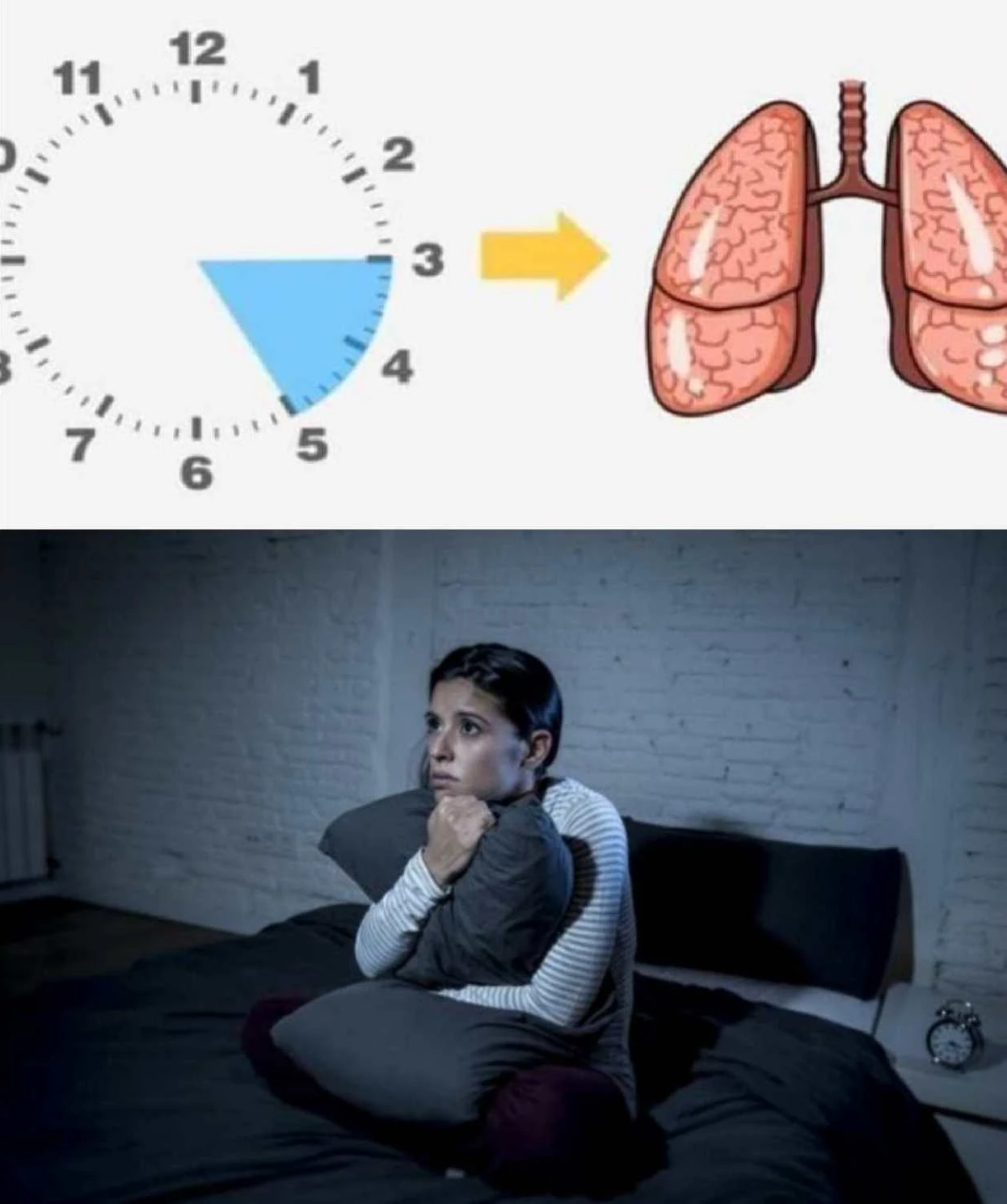 Dies ist die Zeit, in der die Lungen Sauerstoff aufnehmen und ihn im ganzen Körper verteilen. Gleichzeitig reinigen sie sich und bereiten sich auf den neuen Tag vor. Wenn Sie in dieser Zeit häufig aufwachen, kann das ein Hinweis darauf sein, dass Ihre Lungen durch Rauchen, verschmutzte Luft oder chronische Atembeschwerden leiden.